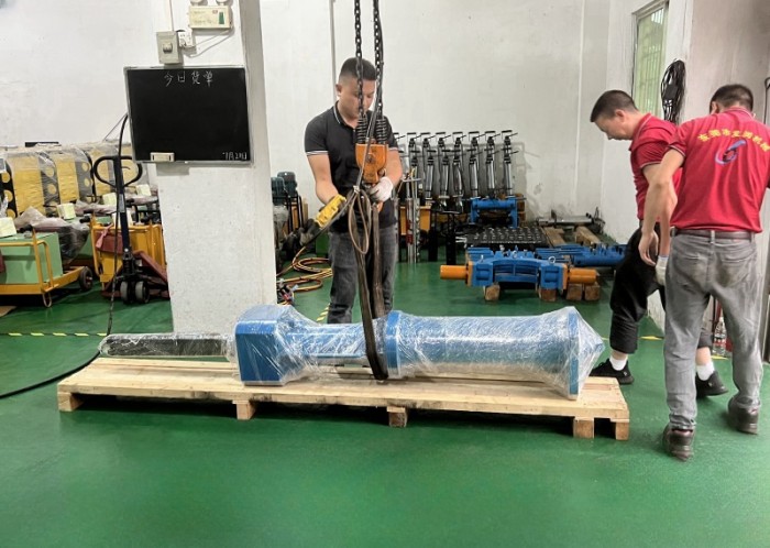 液压机载劈裂机作业时,需要配套设备有钻机一台,挖掘机一台。可以由挖掘机加压带动。